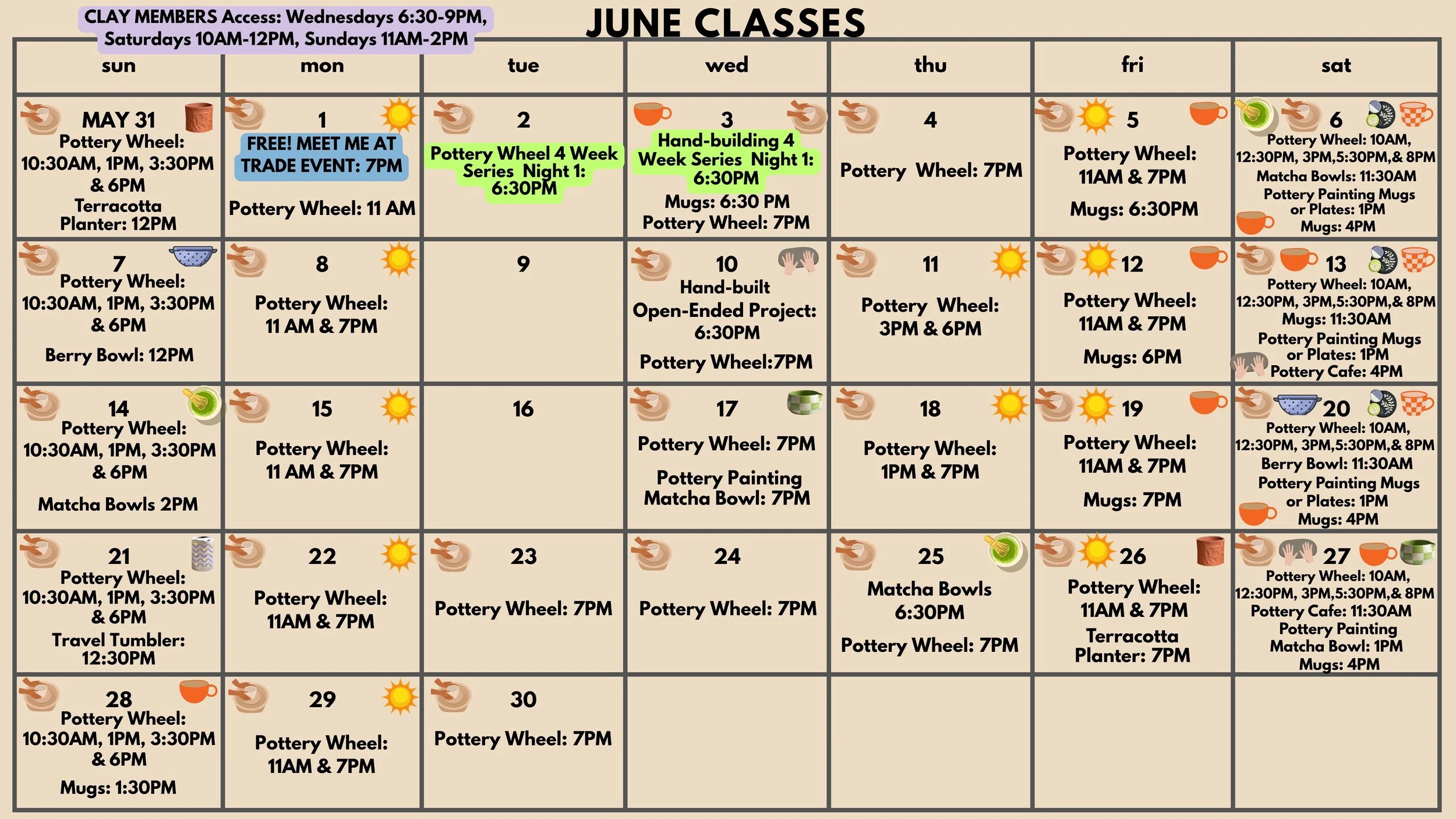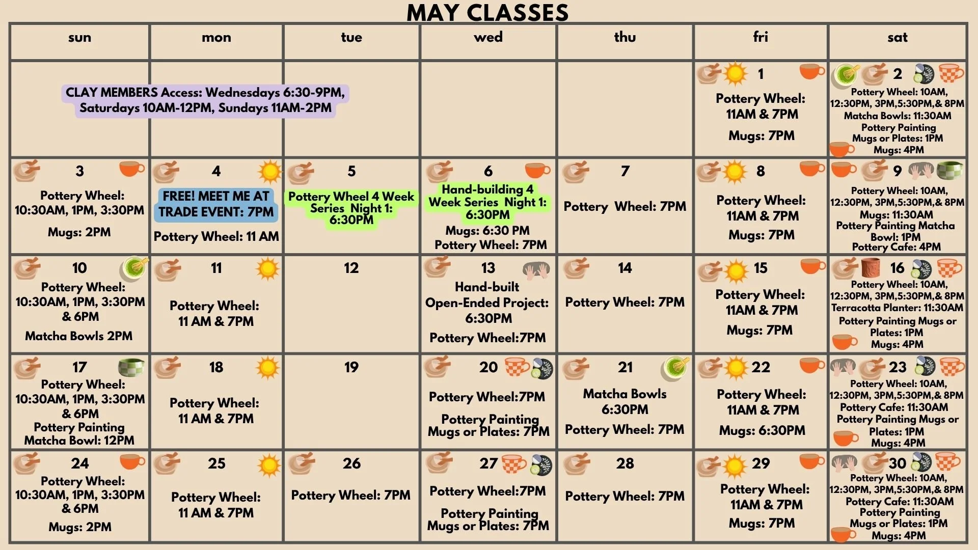 Minimum age for pottery: 10 years old with ticketed parent.